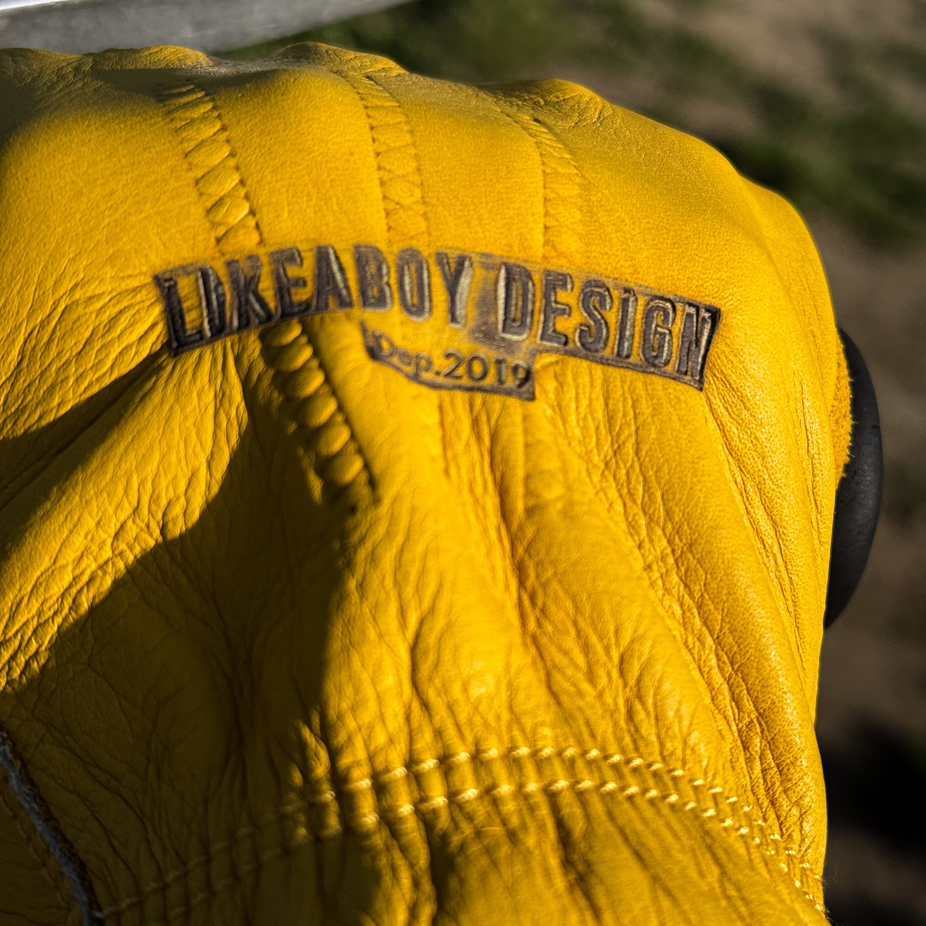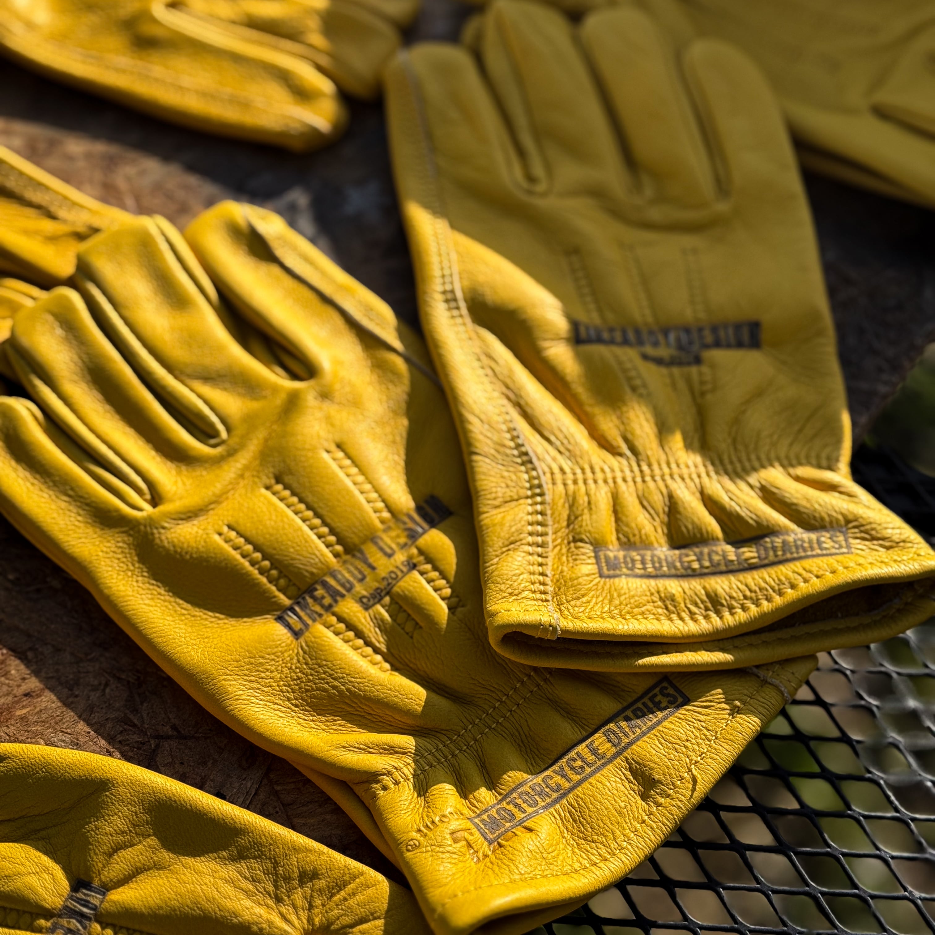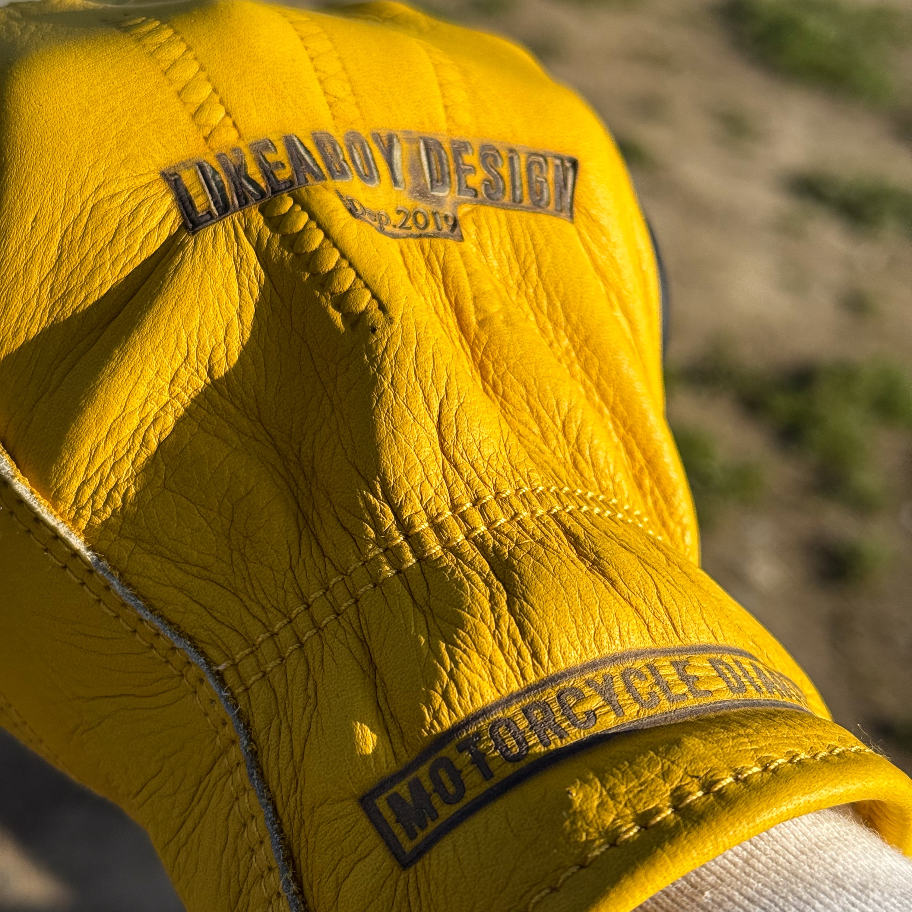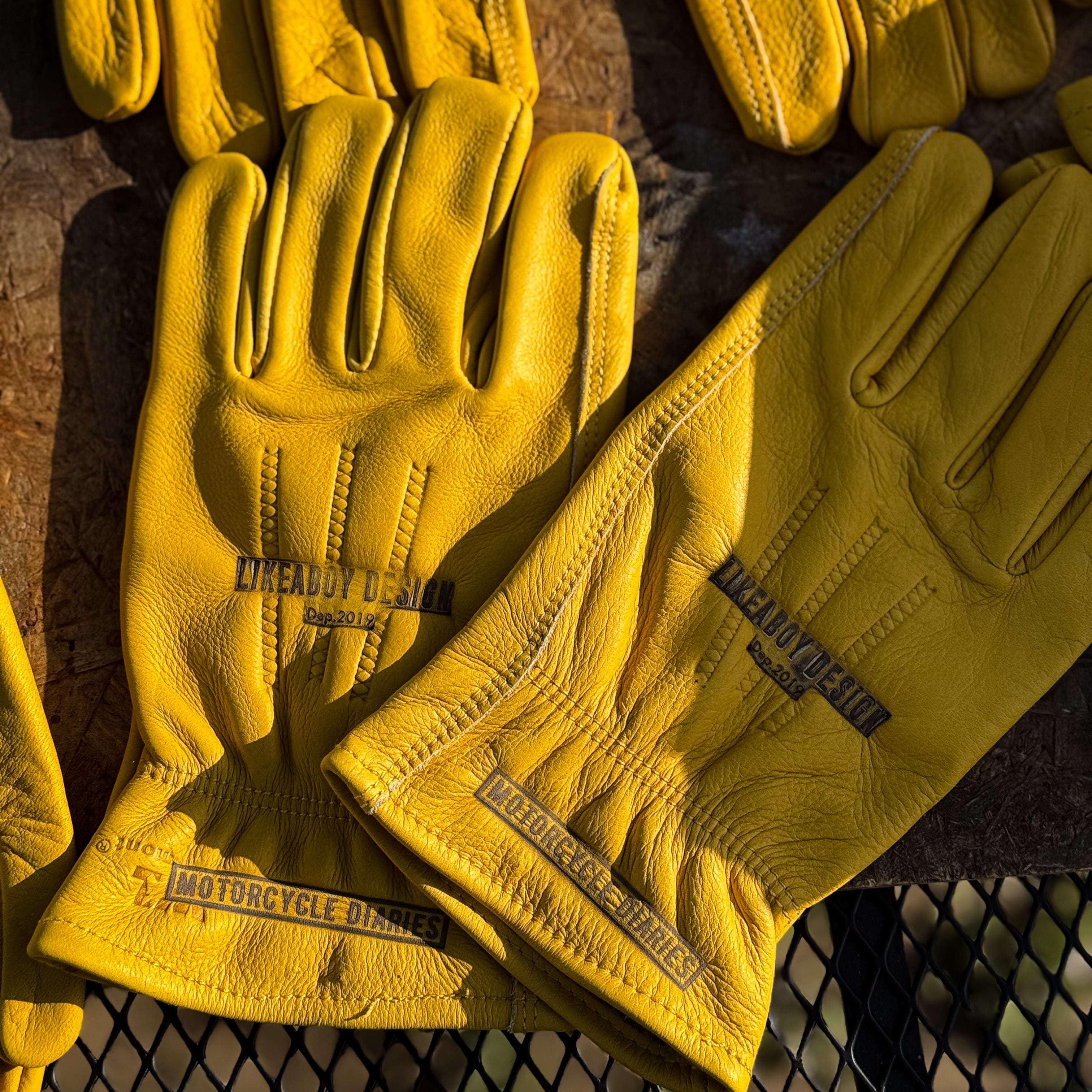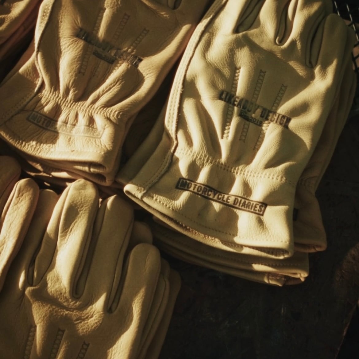 手の甲にLIKEABOY DESIGNを、袖口にはMOTORCYCLE DIARIESのロゴを焼印したデザイン!