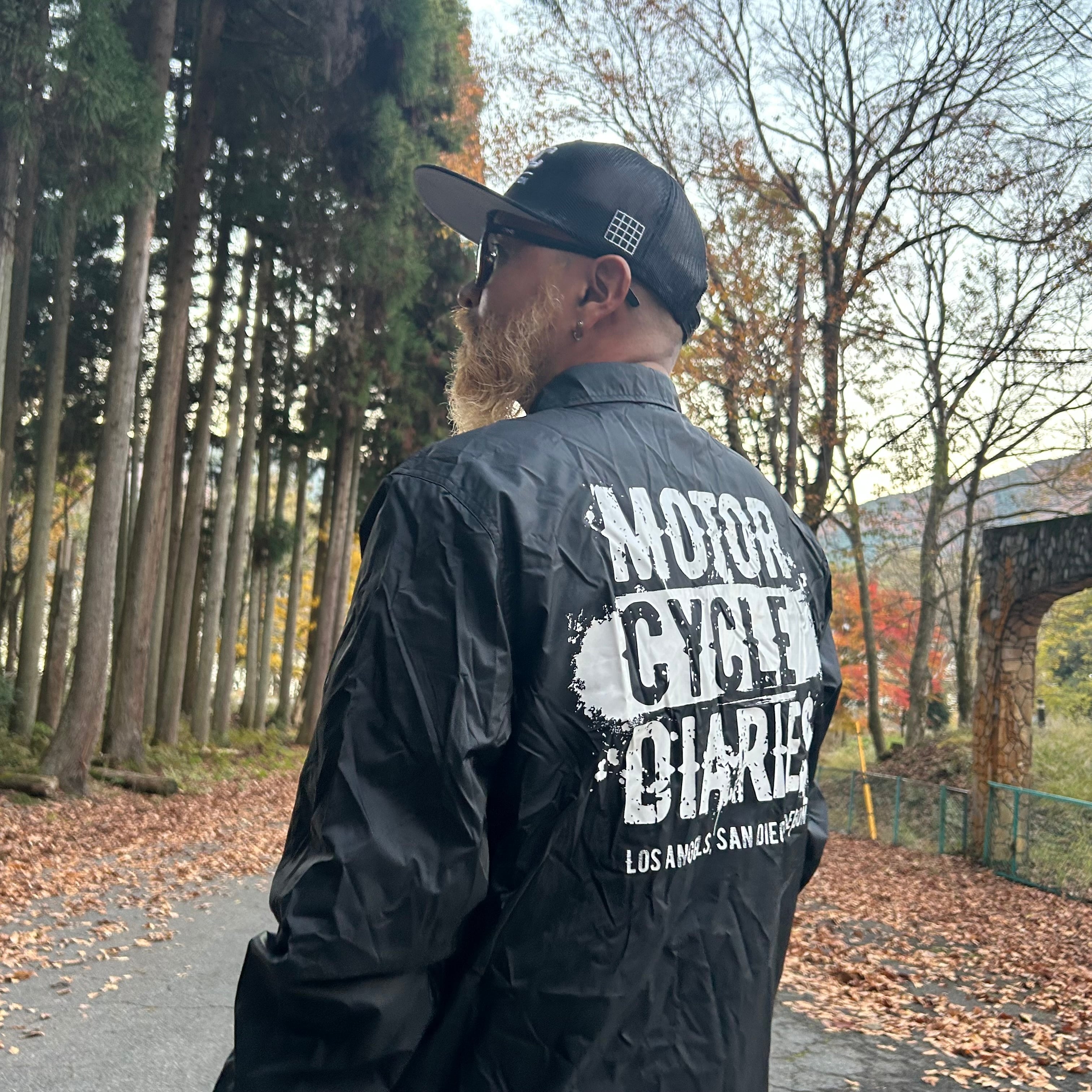 そのイメージを元に、ジョジDがデザインしたのがこのMOTORCYCLE DIARIESの新しい「スーサイド」ロゴ。前回ロンTで大好評だったこのロゴのコーチジャケットが登場!