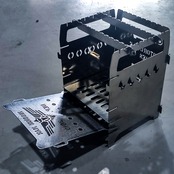 ★フロントパネルをサッと取り外しスロープスリットに差し込むとかまどモードに変形し、長い薪でも焚き火を楽しめます。