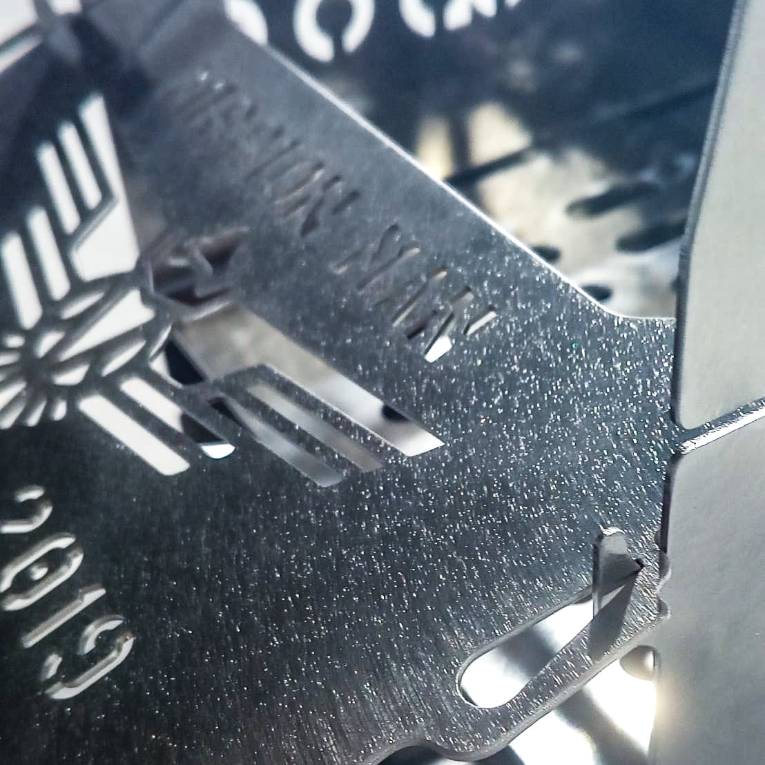 ★細密ながら強度を考えた美しい精密レーザー加工で切り取ったロゴが、冒険心を掻き立てます。