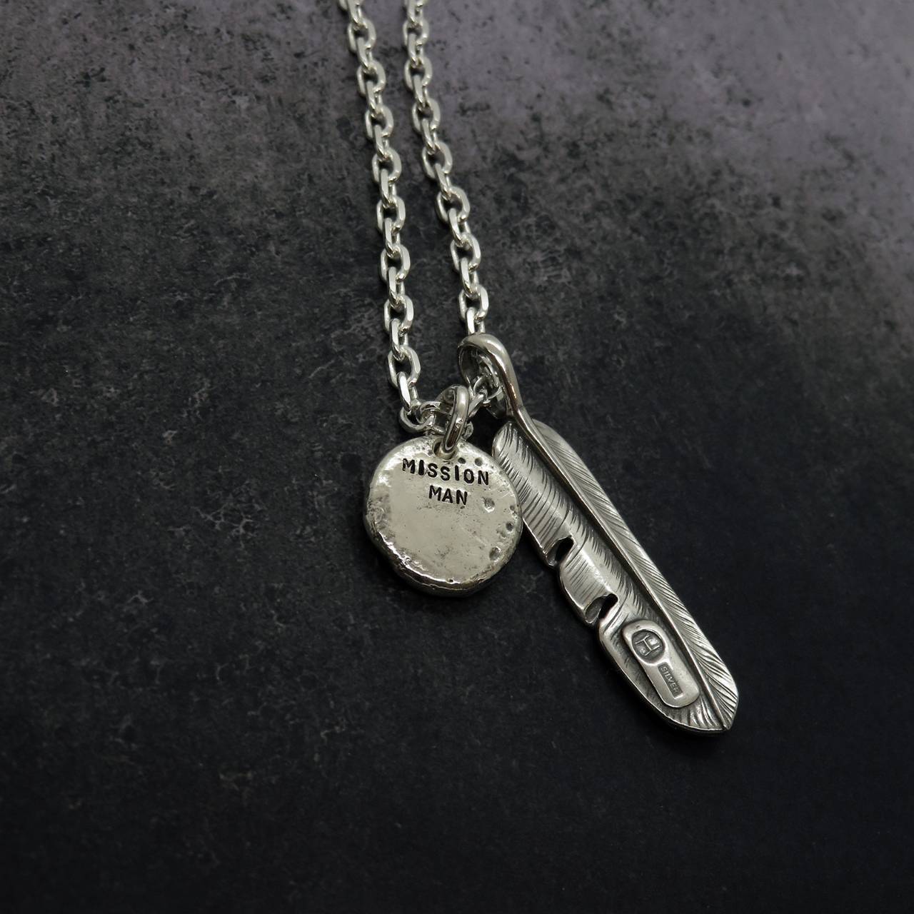 自由の象徴でもあるフェザーと、MISSIONの頭文字のMを刻印した銀。