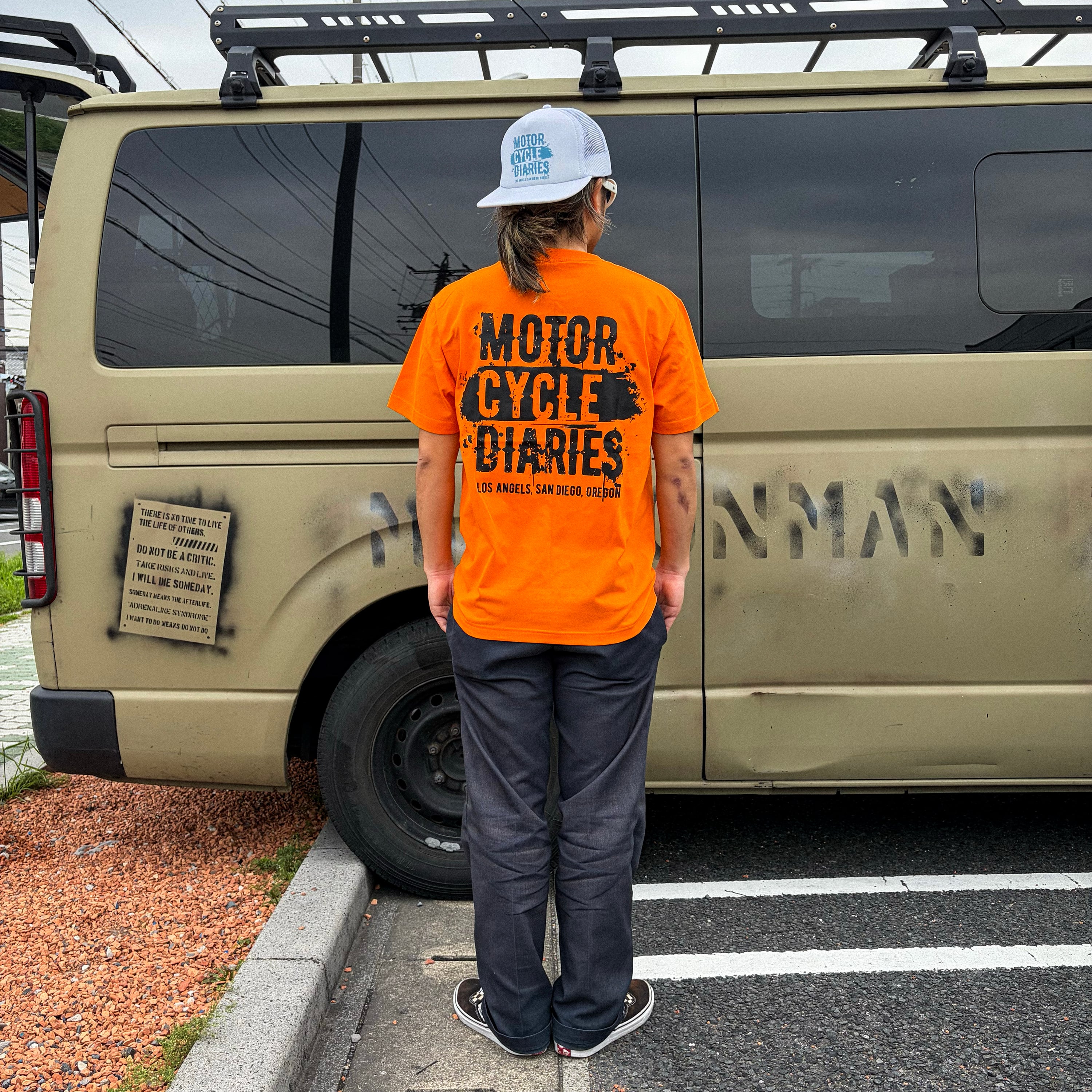 そのイメージを元に、ジョジDがデザインしたのがこのMOTORCYCLE DIARIESの新しい「スーサイド」ロゴ。右袖に縫い付けたRed Tag【DEP.2019】がさりげないアクセントに。